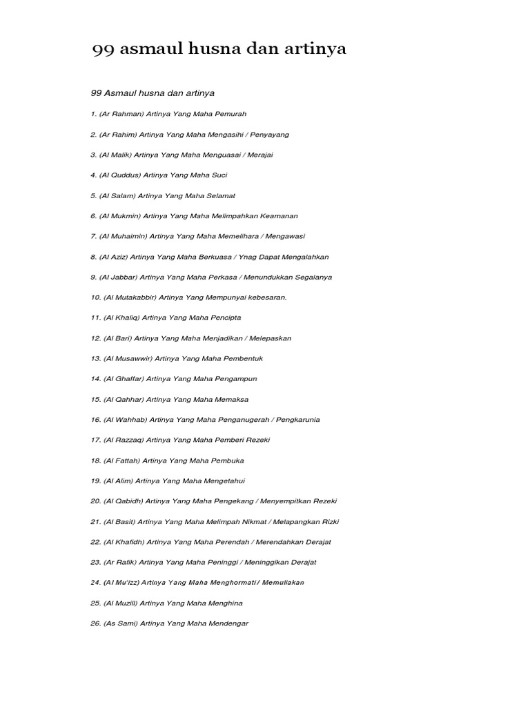 Asmaul husna dan artinya, dilengkpai dengan informasi penting lain seperti dalil, doa, dzikir, gambar, dan video tentang asmaul husna asmaul husna artinya. Barang siapa membaca ya rahmaan sebanyak 100 kali tiap selesai mengerjakan sholat.